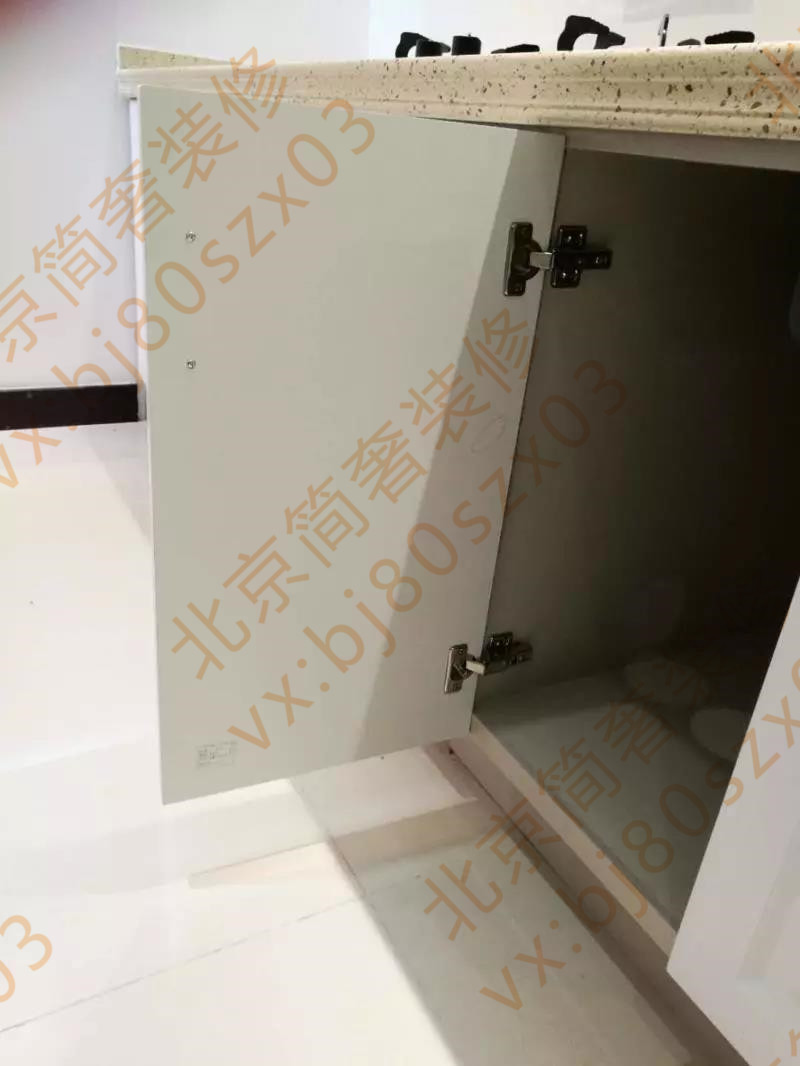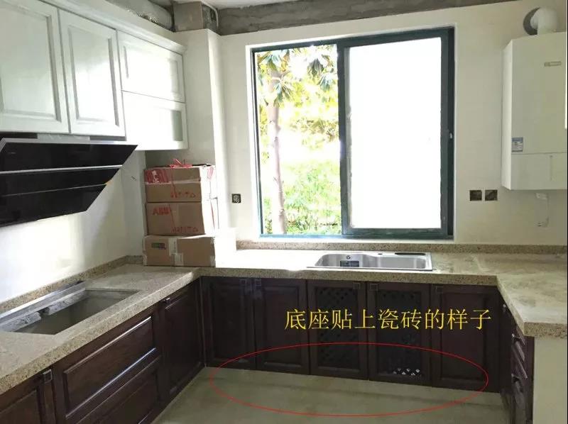 3.简奢装修现场制作砖夹橱柜,瓷砖踢脚板,无缝对接,内部全部瓷砖拼接无死角,蟑螂无处藏身。