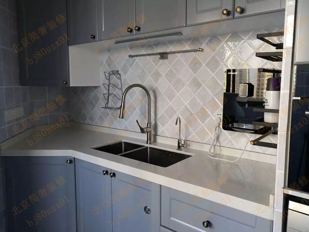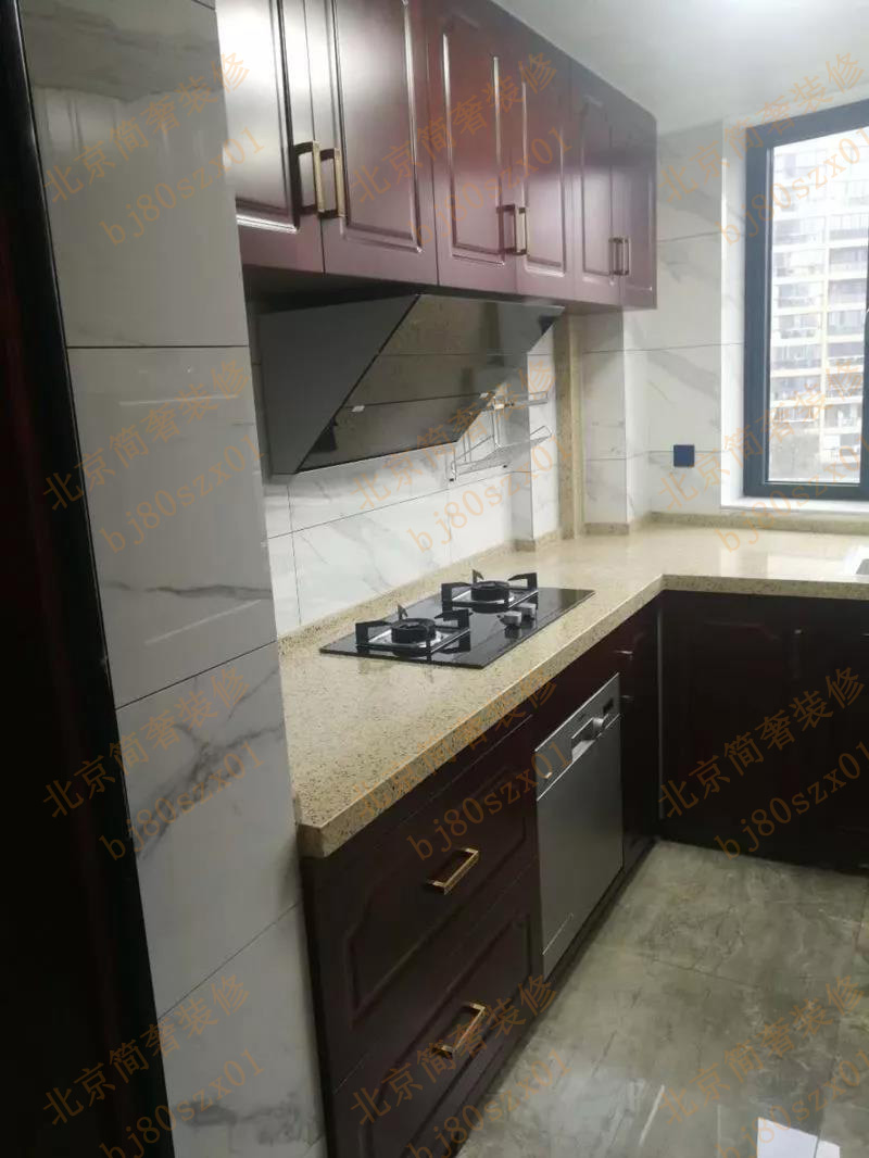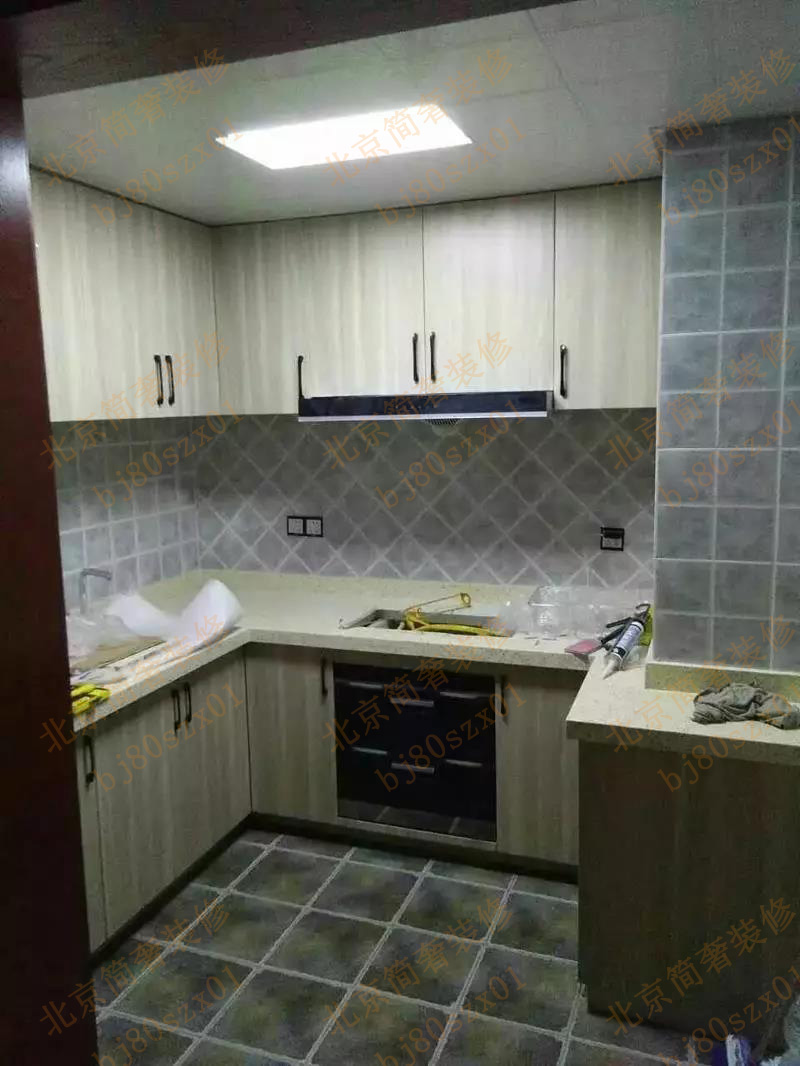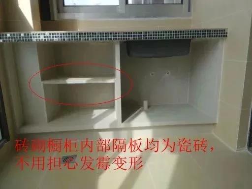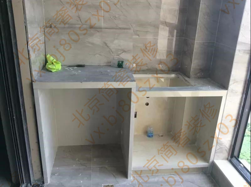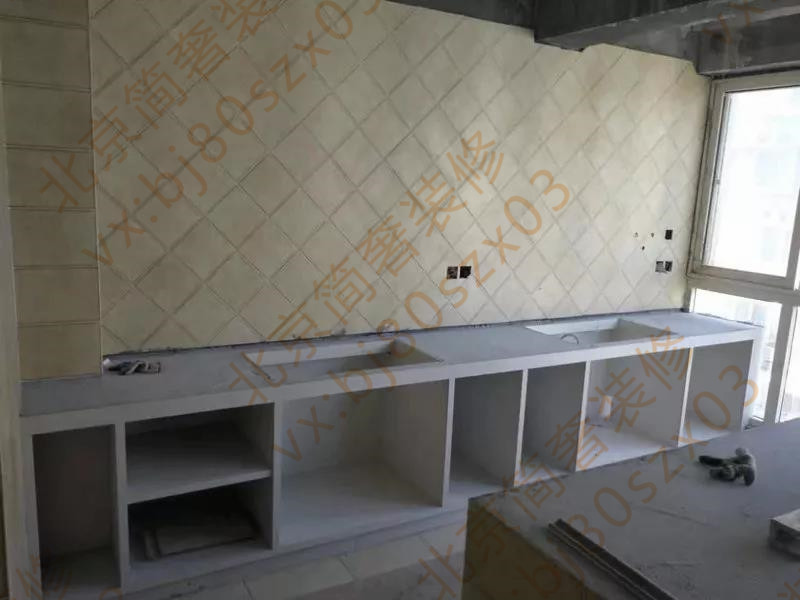 3.简奢装修现场制作砖夹橱柜,防水防潮,可以用水冲洗。
