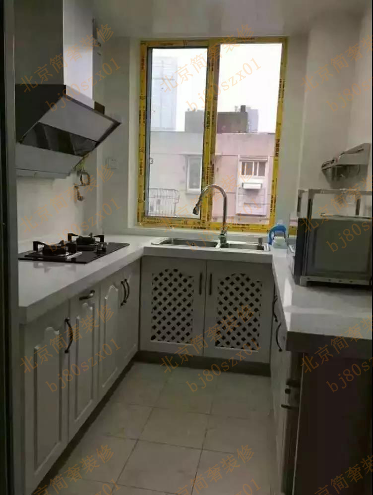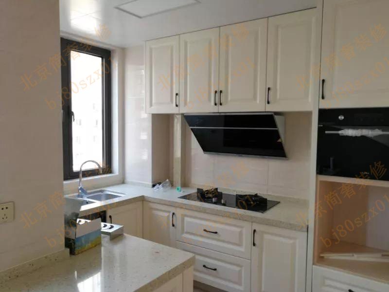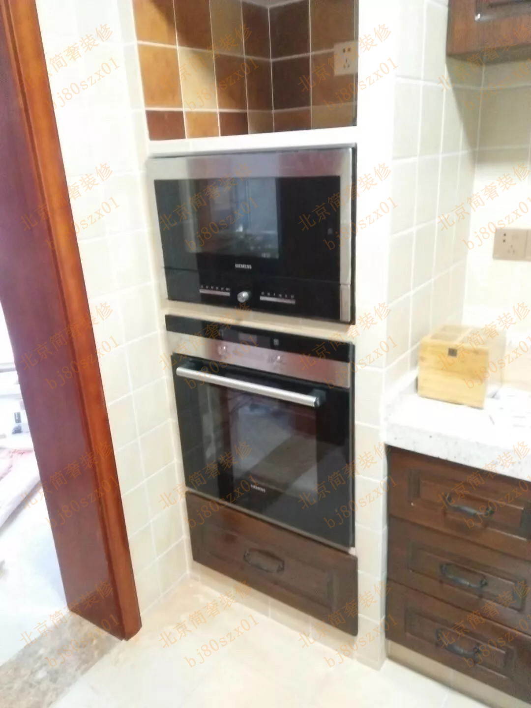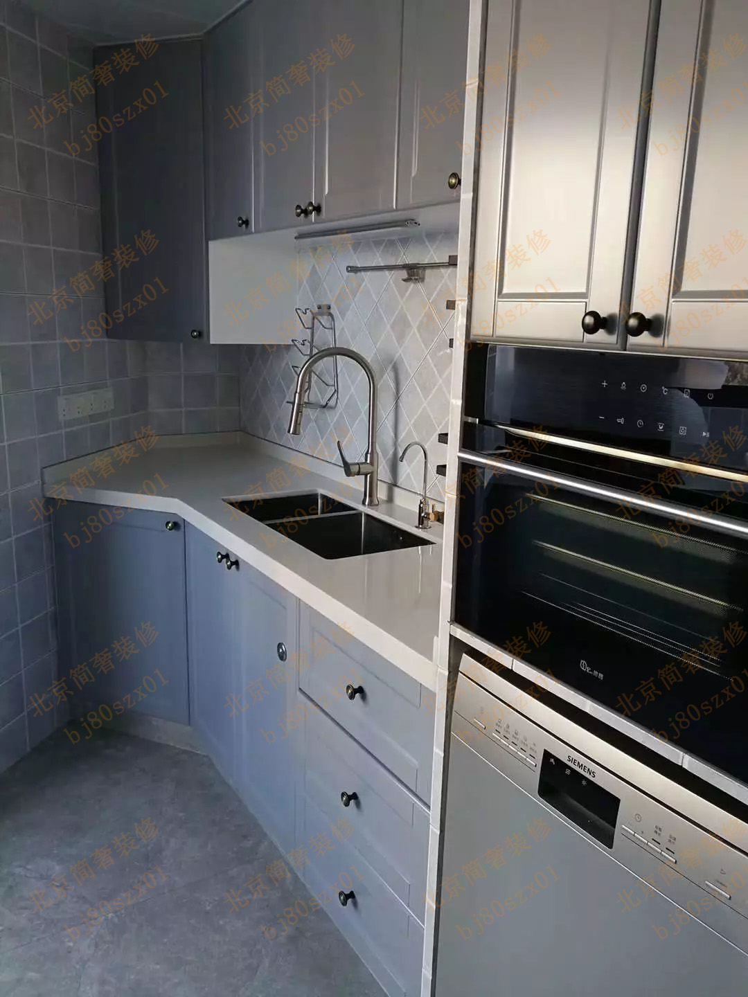 3.简奢装修现场制作砖夹橱柜,防水防潮,可以用水冲洗。