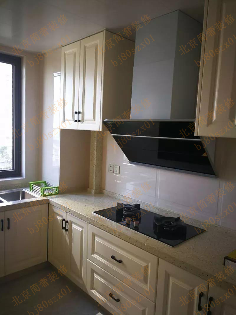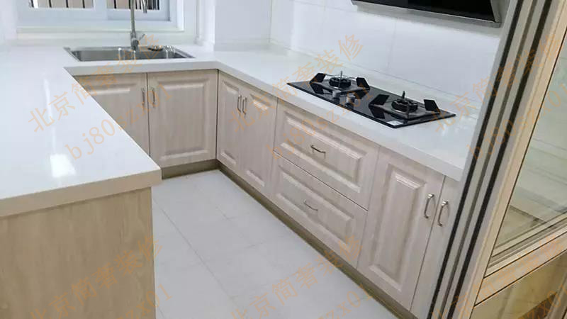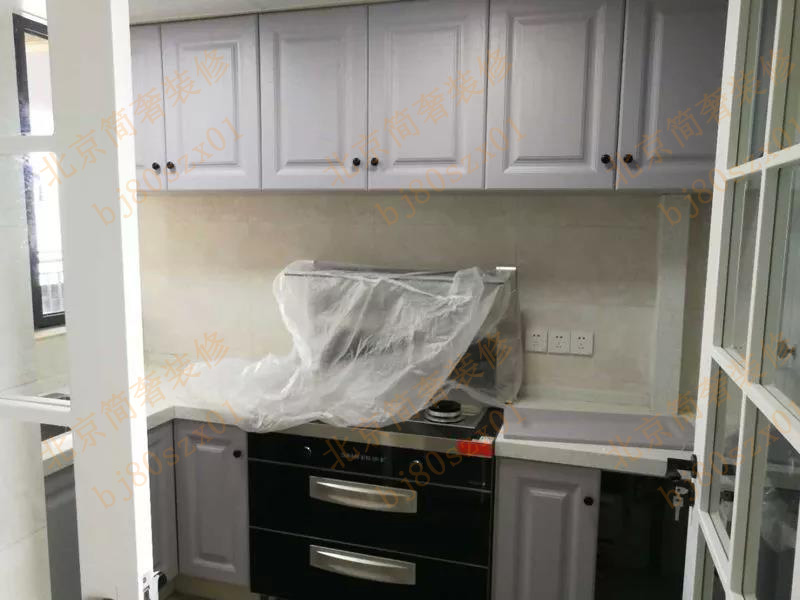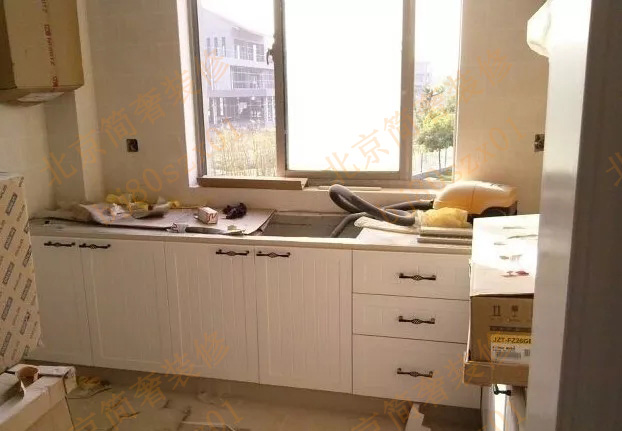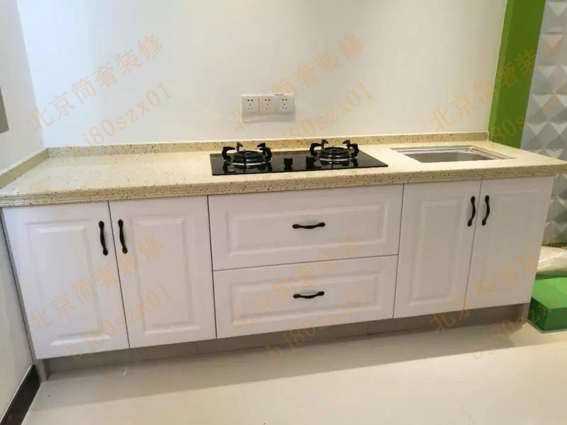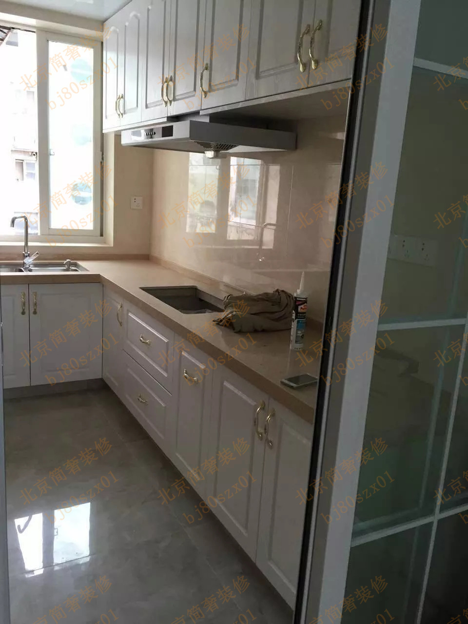 3.简奢装修现场制作砖夹橱柜,根据个人喜好定制门板,比较美观。这里需要说明的砖夹橱柜完工的外观和定制橱柜是一样的。