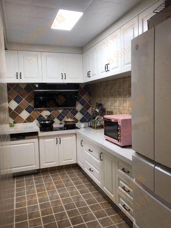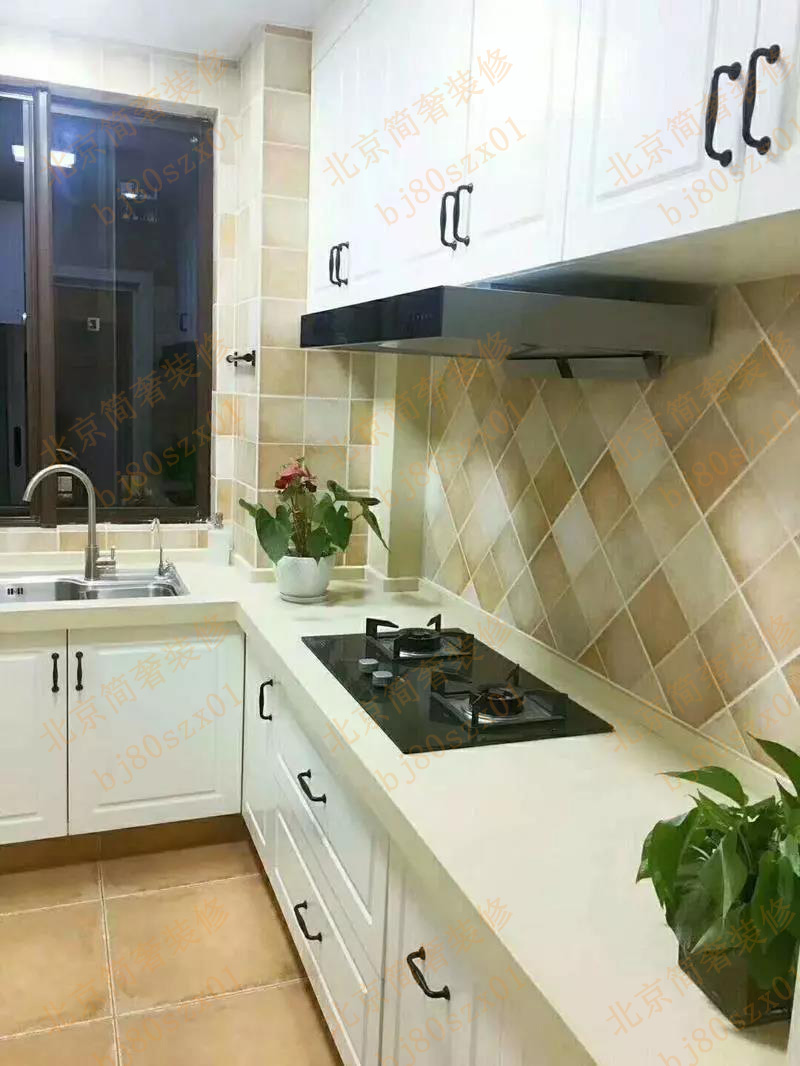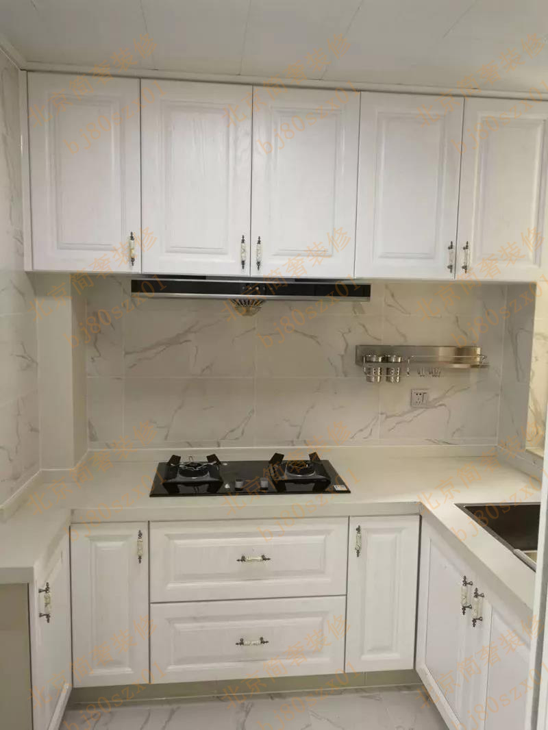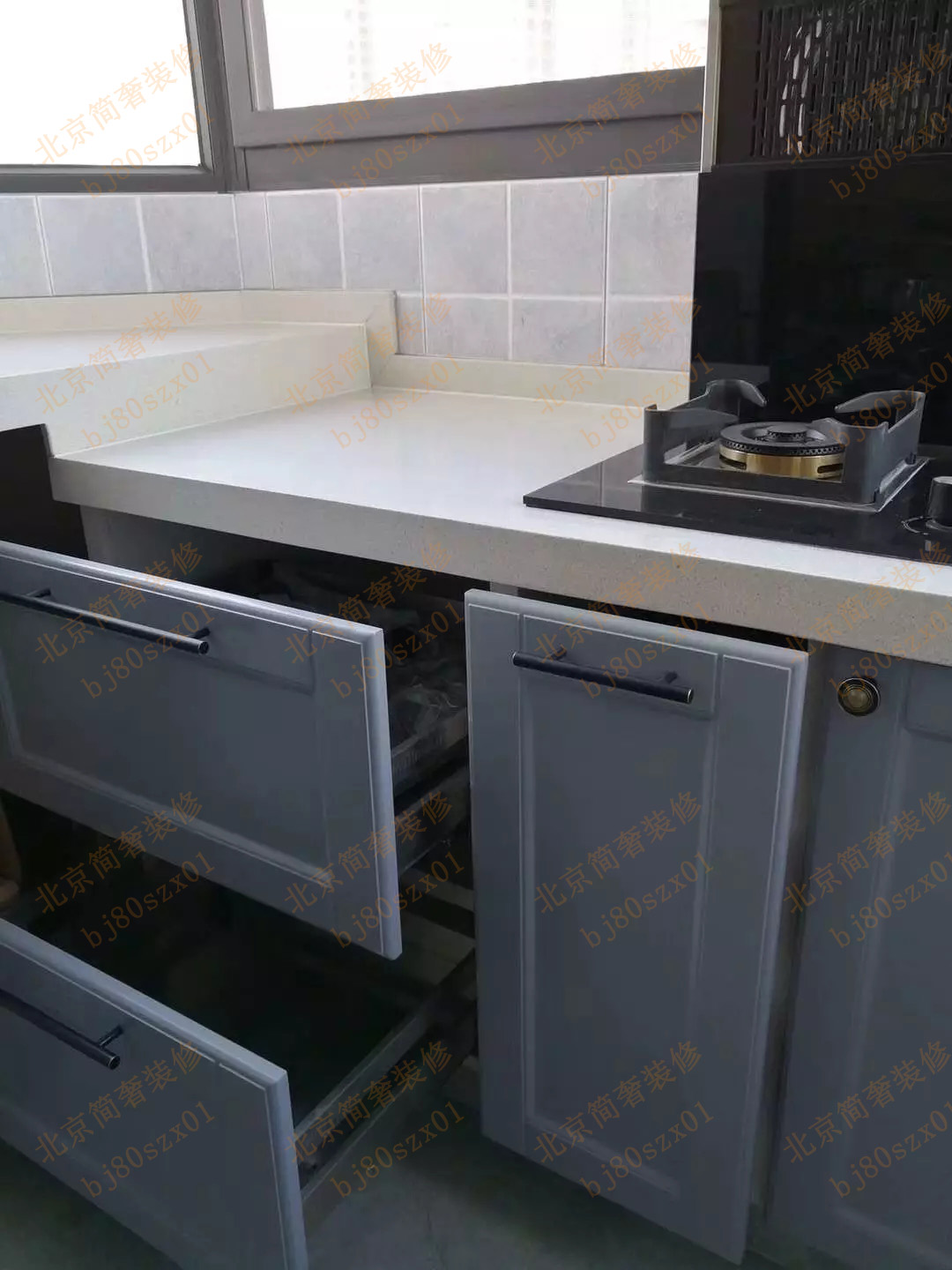 3.简奢装修现场制作砖夹橱柜,根据个人喜好定制门板,比较美观。这里需要说明的砖夹橱柜完工的外观和定制橱柜是一样的。