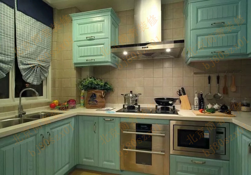 1.整体定制板材橱柜,根据个人喜好定制门板,比较美观;