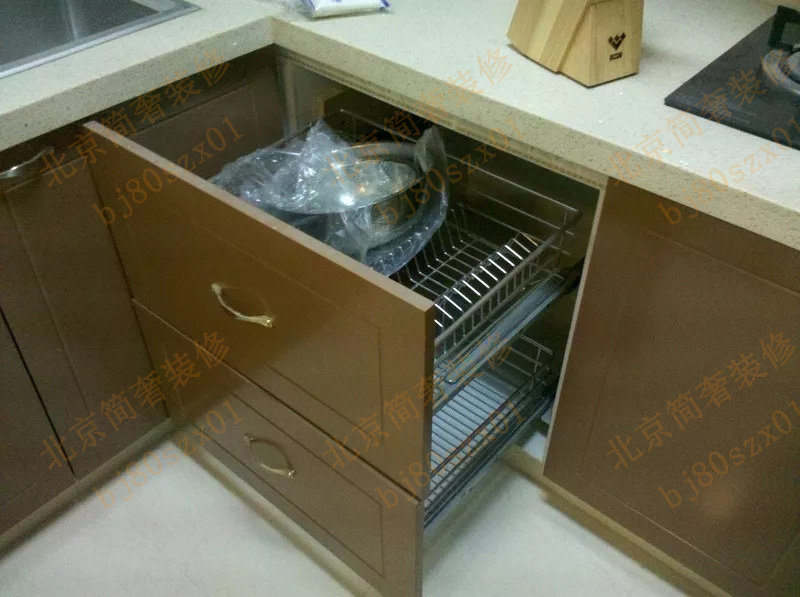 2.整体定制不锈钢橱柜,寿命长,要注意保护台面,台面容易划伤,剁骨头震动;