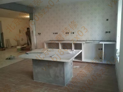 3.简奢装修现场制作砖夹橱柜,一般是石英石台面,内部瓷砖,好打理。