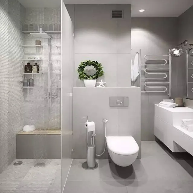 卫生间的四大基本功能是盥洗、马桶、洗澡、洗衣。那在分配这四个功能区域的时候要考虑动线的合理,盥洗和马桶是使用频率最高的,所以这两项一般在靠近门口位置,隐私考虑洗澡通常在最里边,洗衣则看空间情况,如果卫生间放不下,考虑卫生间外改造出洗衣区或者放在厨房。干区湿区尽量分开,国内卫生间空间有限一般达不到四式分离,二分离三分离即可。